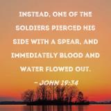Instead, one of the soldiers pierced His side with a spear, and immediately blood and water flowed out.