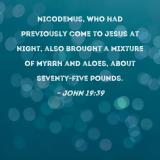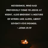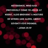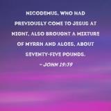 Nicodemus, who had previously come to Jesus at night, also brought a mixture of myrrh and aloes, about seventy-five pounds.