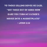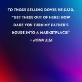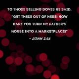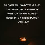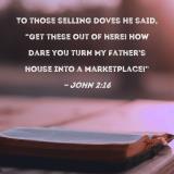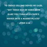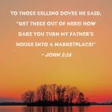 To those selling doves He said, "Get these out of here! How dare you turn My Father's house into a marketplace!"