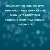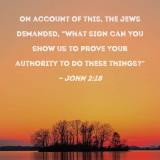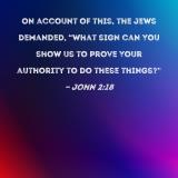 On account of this, the Jews demanded, "What sign can You show us to prove Your authority to do these things?"