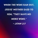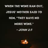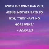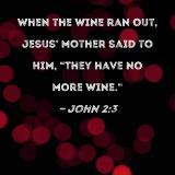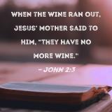 When the wine ran out, Jesus' mother said to Him, "They have no more wine."