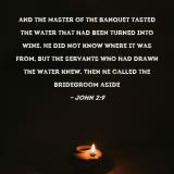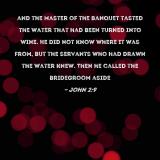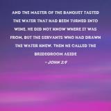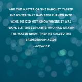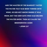 and the master of the banquet tasted the water that had been turned into wine. He did not know where it was from, but the servants who had drawn the water knew. Then he called the bridegroom aside