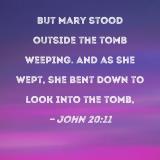 But Mary stood outside the tomb weeping. And as she wept, she bent down to look into the tomb,