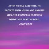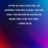After He had said this, He showed them His hands and His side. The disciples rejoiced when they saw the Lord.