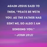 Again Jesus said to them, "Peace be with you. As the Father has sent Me, so also I am sending you."