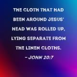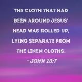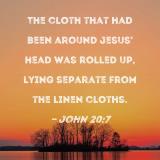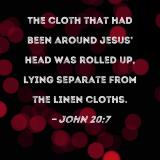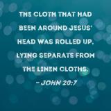The cloth that had been around Jesus' head was rolled up, lying separate from the linen cloths.