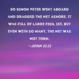 So Simon Peter went aboard and dragged the net ashore. It was full of large fish, 153, but even with so many, the net was not torn.