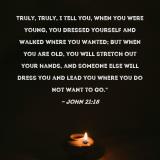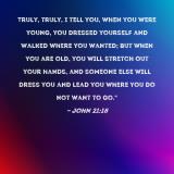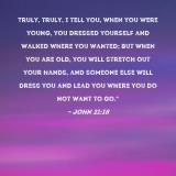 Truly, truly, I tell you, when you were young, you dressed yourself and walked where you wanted; but when you are old, you will stretch out your hands, and someone else will dress you and lead you where you do not want to go."