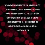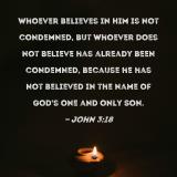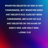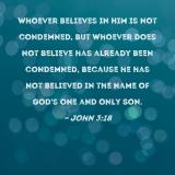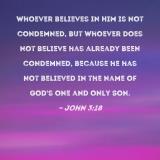 Whoever believes in Him is not condemned, but whoever does not believe has already been condemned, because he has not believed in the name of God's one and only Son.