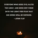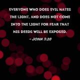 Everyone who does evil hates the Light, and does not come into the Light for fear that his deeds will be exposed.