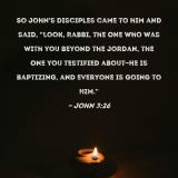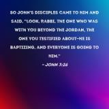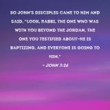 So John's disciples came to him and said, "Look, Rabbi, the One who was with you beyond the Jordan, the One you testified about--He is baptizing, and everyone is going to Him."