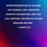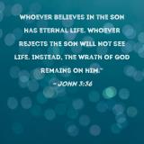 Whoever believes in the Son has eternal life. Whoever rejects the Son will not see life. Instead, the wrath of God remains on him."