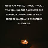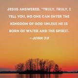Jesus answered, "Truly, truly, I tell you, no one can enter the kingdom of God unless he is born of water and the Spirit.