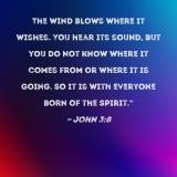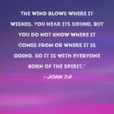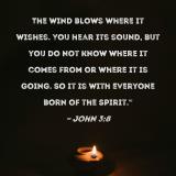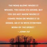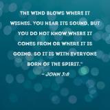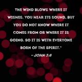 The wind blows where it wishes. You hear its sound, but you do not know where it comes from or where it is going. So it is with everyone born of the Spirit."