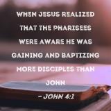 When Jesus realized that the Pharisees were aware He was gaining and baptizing more disciples than John
