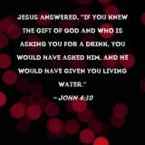 Jesus answered, "If you knew the gift of God and who is asking you for a drink, you would have asked Him, and He would have given you living water."