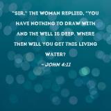"Sir," the woman replied, "You have nothing to draw with and the well is deep. Where then will You get this living water?