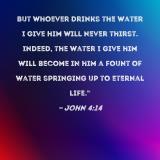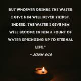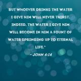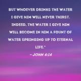 But whoever drinks the water I give him will never thirst. Indeed, the water I give him will become in him a fount of water springing up to eternal life."