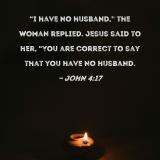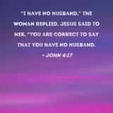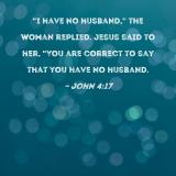 "I have no husband," the woman replied. Jesus said to her, "You are correct to say that you have no husband.