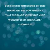 Our fathers worshiped on this mountain, but you Jews say that the place where one must worship is in Jerusalem."