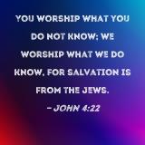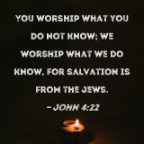You worship what you do not know; we worship what we do know, for salvation is from the Jews.