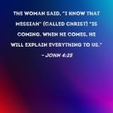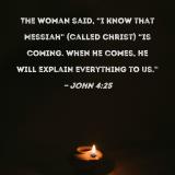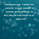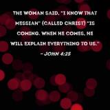 The woman said, "I know that Messiah" (called Christ) "is coming. When He comes, He will explain everything to us."