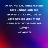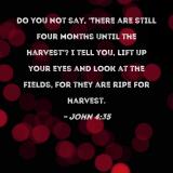Do you not say, 'There are still four months until the harvest'? I tell you, lift up your eyes and look at the fields, for they are ripe for harvest.