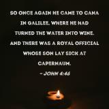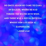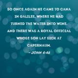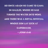 So once again He came to Cana in Galilee, where He had turned the water into wine. And there was a royal official whose son lay sick at Capernaum.
