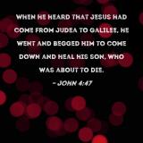 When he heard that Jesus had come from Judea to Galilee, he went and begged Him to come down and heal his son, who was about to die.