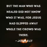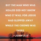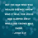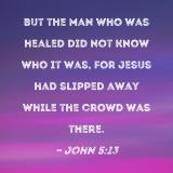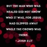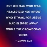 But the man who was healed did not know who it was, for Jesus had slipped away while the crowd was there.