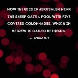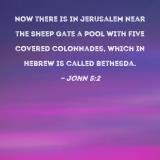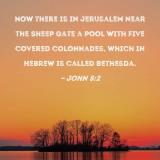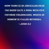 Now there is in Jerusalem near the Sheep Gate a pool with five covered colonnades, which in Hebrew is called Bethesda.