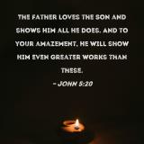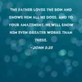 The Father loves the Son and shows Him all He does. And to your amazement, He will show Him even greater works than these.