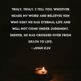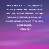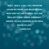 Truly, truly, I tell you, whoever hears My word and believes Him who sent Me has eternal life and will not come under judgment. Indeed, he has crossed over from death to life.