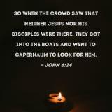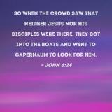 So when the crowd saw that neither Jesus nor His disciples were there, they got into the boats and went to Capernaum to look for Him.