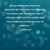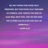 Do not work for food that perishes, but for food that endures to eternal life, which the Son of Man will give you. For on Him God the Father has placed His seal of approval."