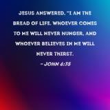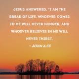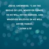 Jesus answered, "I am the bread of life. Whoever comes to Me will never hunger, and whoever believes in Me will never thirst.
