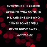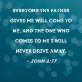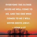 Everyone the Father gives Me will come to Me, and the one who comes to Me I will never drive away.