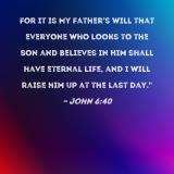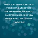 For it is My Father's will that everyone who looks to the Son and believes in Him shall have eternal life, and I will raise him up at the last day."