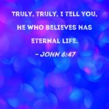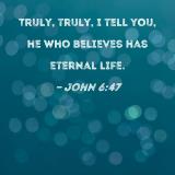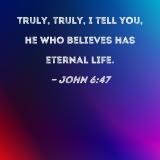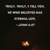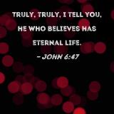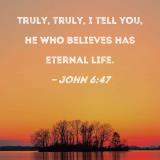 Truly, truly, I tell you, he who believes has eternal life.