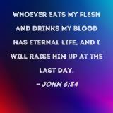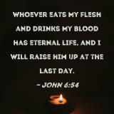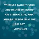 Whoever eats My flesh and drinks My blood has eternal life, and I will raise him up at the last day.