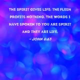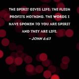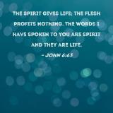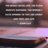 The Spirit gives life; the flesh profits nothing. The words I have spoken to you are spirit and they are life.