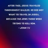 After this, Jesus traveled throughout Galilee. He did not want to travel in Judea, because the Jews there were trying to kill Him.