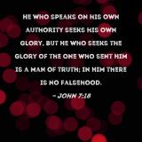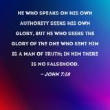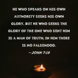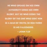 He who speaks on his own authority seeks his own glory, but He who seeks the glory of the One who sent Him is a man of truth; in Him there is no falsehood.