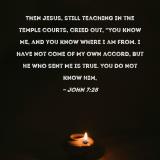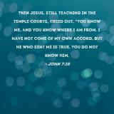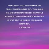 Then Jesus, still teaching in the temple courts, cried out, "You know Me, and you know where I am from. I have not come of My own accord, but He who sent Me is true. You do not know Him,