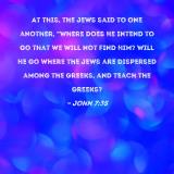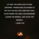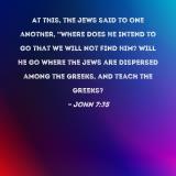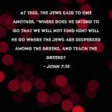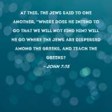 At this, the Jews said to one another, "Where does He intend to go that we will not find Him? Will He go where the Jews are dispersed among the Greeks, and teach the Greeks?