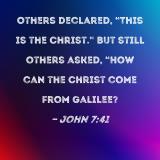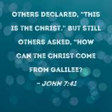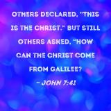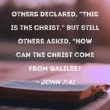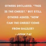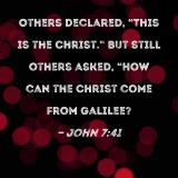 Others declared, "This is the Christ." But still others asked, "How can the Christ come from Galilee?