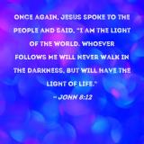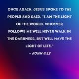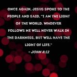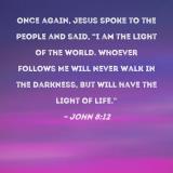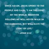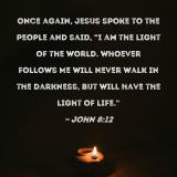 Once again, Jesus spoke to the people and said, "I am the light of the world. Whoever follows Me will never walk in the darkness, but will have the light of life."
