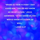 "Where is Your Father?" they asked Him. "You do not know Me or My Father," Jesus answered. "If you knew Me, you would know My Father as well."