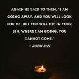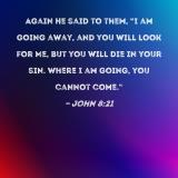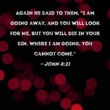 Again He said to them, "I am going away, and you will look for Me, but you will die in your sin. Where I am going, you cannot come."