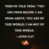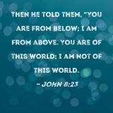 Then He told them, "You are from below; I am from above. You are of this world; I am not of this world.